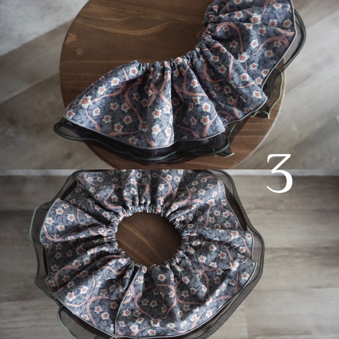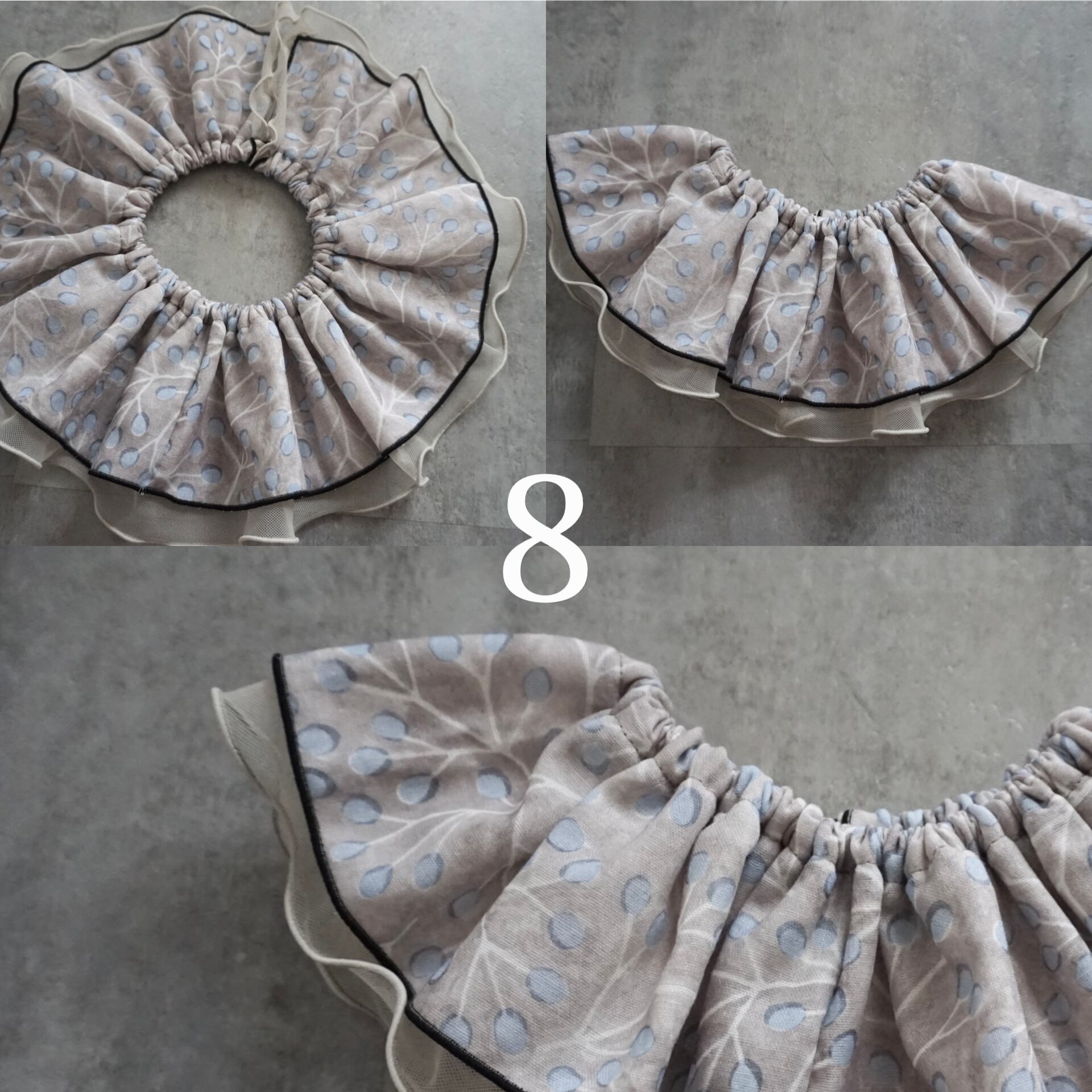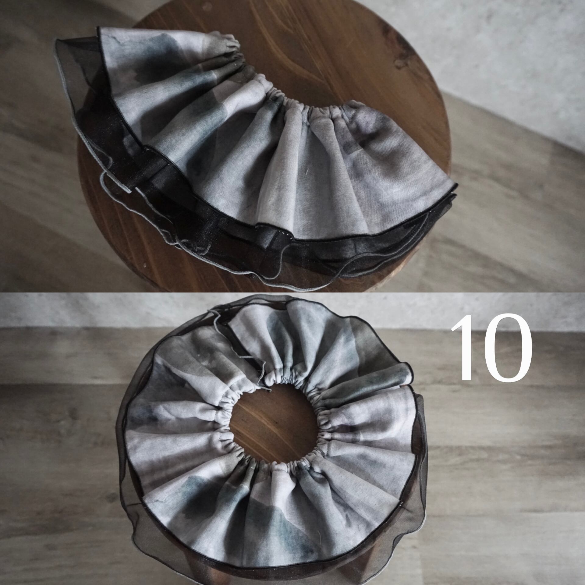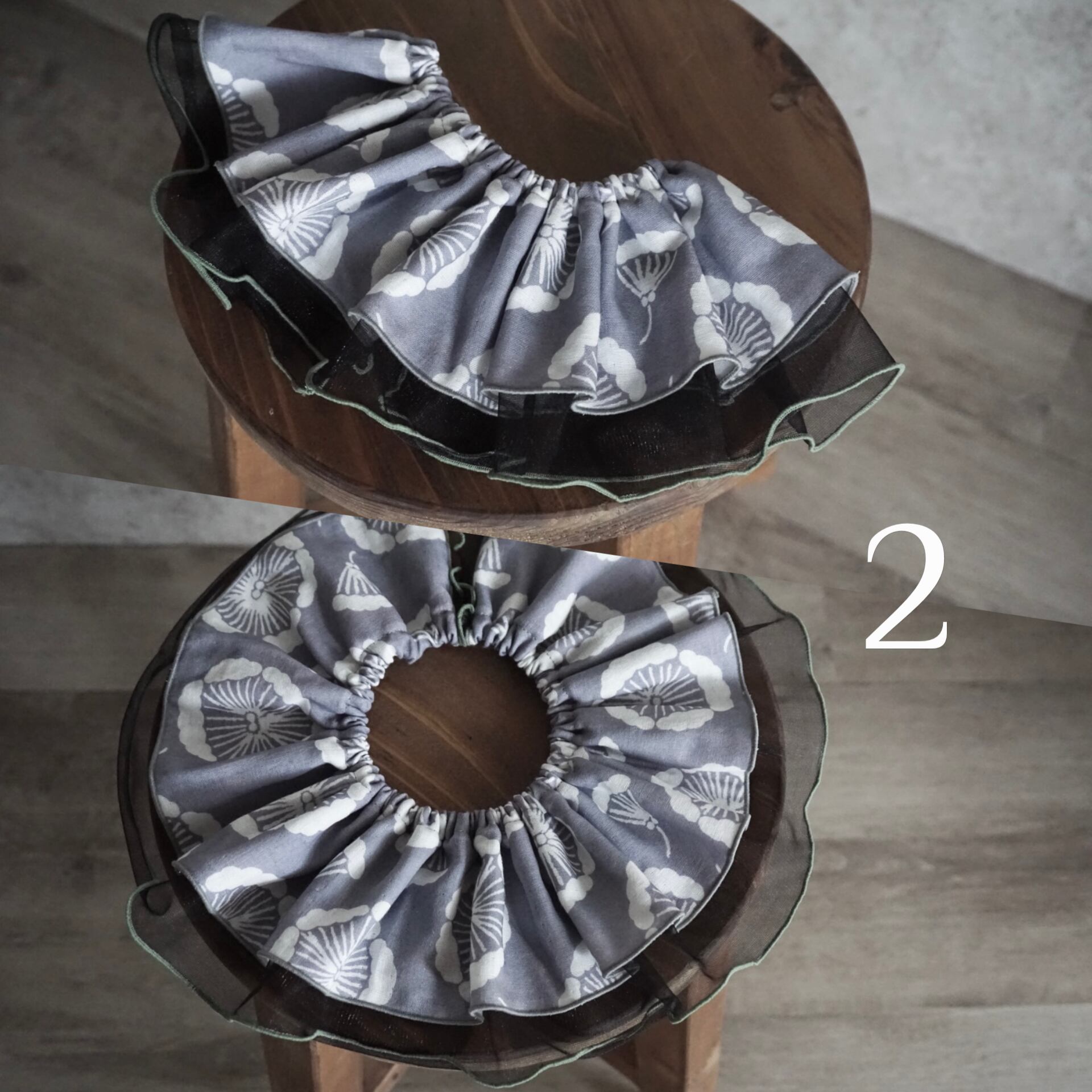 ふんわりとしたダブルガーゼと柔らかいチュールを使用した「まるいフリルスタイ」です◎