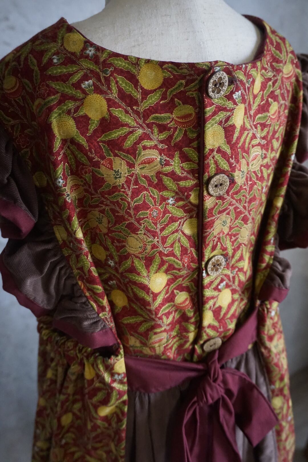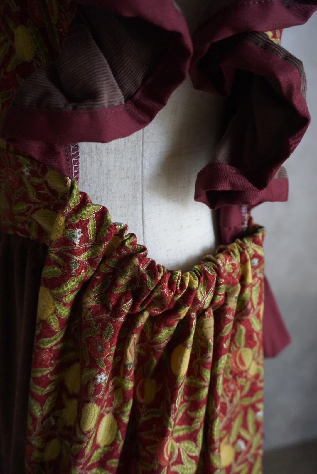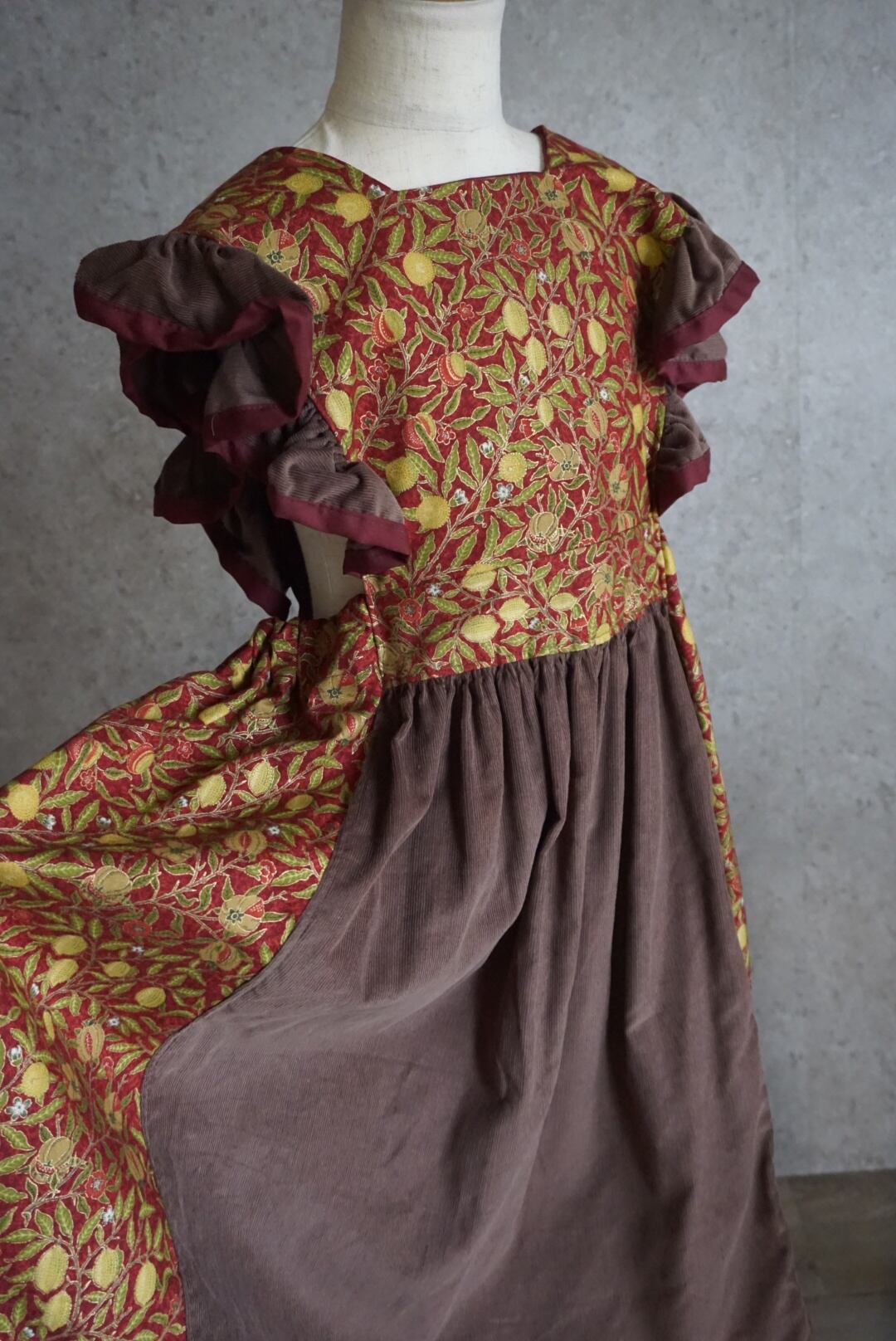 モリス生地とコーデュロイの生地を組み合わせて仕立てました。